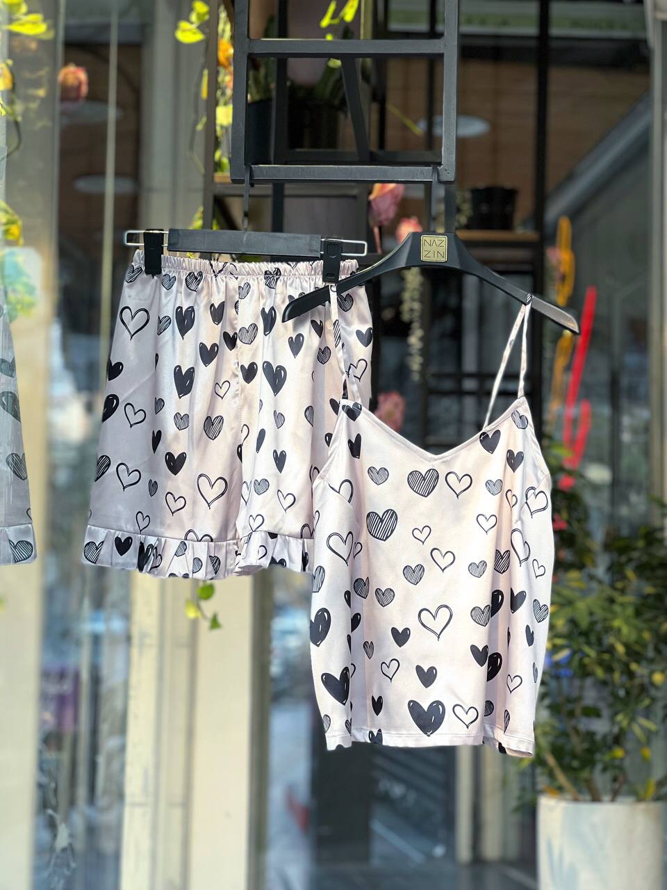 تاپ و شلوارک ساتن طرح قلب SW0003